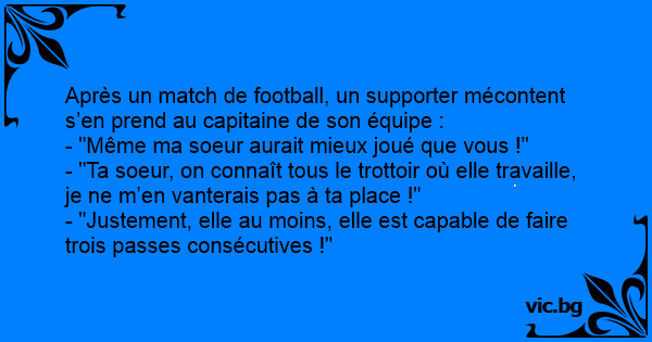 Après un match de football, un supporter mécontent s’en prend au capitaine de son équipe :