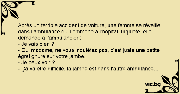 - Ça va être difficile, la jambe est dans l’autre ambulance…