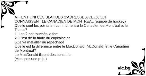 ATTENTION! CES BLAGUES S’ADRESSE A CEUX QUI CONNAISSENT LE CANADIEN DE MONTRÉAL (équipe de hockey)