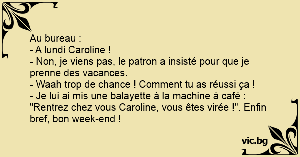 "Rentrez chez vous Caroline, vous êtes virée !". Enfin bref, bon week-end !