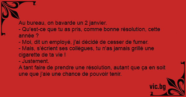 - Moi, dit un employé, j'ai décidé de cesser de fumer.