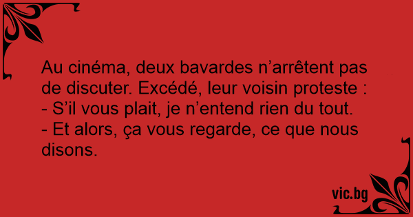 Au cinéma, deux bavardes n’arrêtent pas de discuter. Excédé, leur voisin proteste :