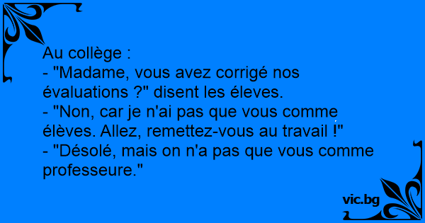 - "Non, car je n'ai pas que vous comme élèves. Allez, remettez-vous au travail !"