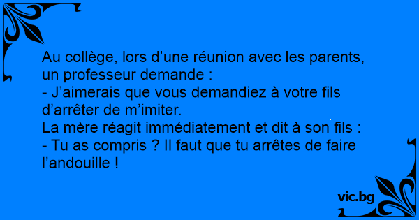 Au collège, lors d’une réunion avec les parents, un professeur demande :