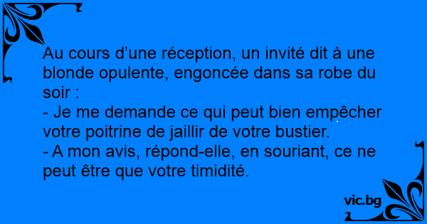 Au cours d’une réception, un invité dit à une blonde opulente, engoncée dans sa robe du soir :