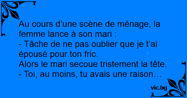 Au cours d’une scène de ménage, la femme lance à son mari :
