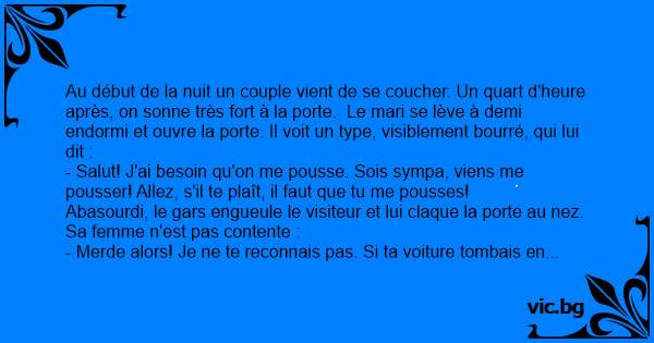 C'est alors que le mari ayant beaucoup de remords se rhabille et ouvre la porte d'entrée en disant :
