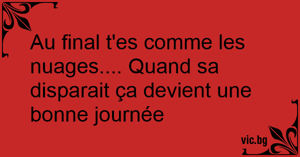 Au final t'es comme les nuages.... Quand sa disparait ça devient une воnnе journée