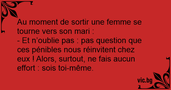 - Et n’oublie pas : pas question que ces pénibles nous réinvitent chez eux ! Alors, surtout, ne fais aucun effort : sois toi-même.