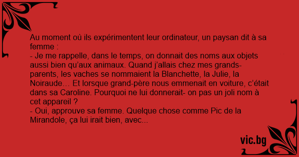 Au moment où ils expérimentent leur ordinateur, un paysan dit à sa femme :