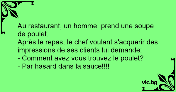 Après le repas, le chef voulant s'acquerir des impressions de ses clients lui demande: