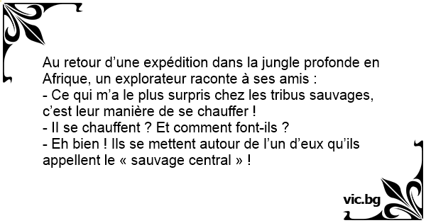 - Ce qui m’a le plus surpris chez les tribus sauvages, c’est leur manière de se chauffer !