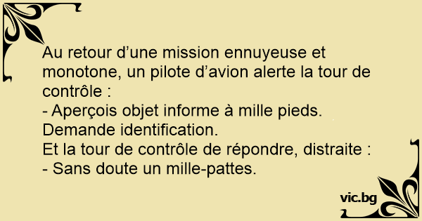 Au retour d’une mission ennuyeuse et monotone, un pilote d’avion alerte la tour de contrôle :