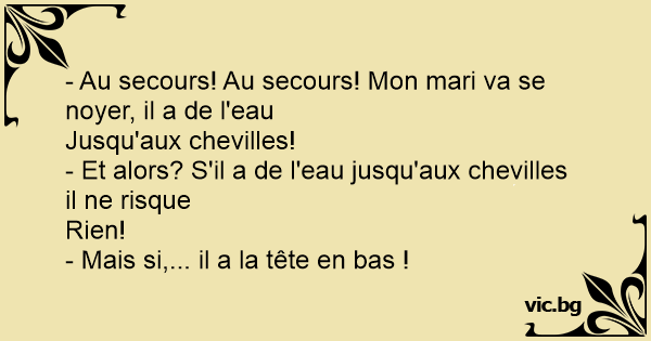 - Au secours! Au secours! Mon mari va se noyer, il a de l'eau
