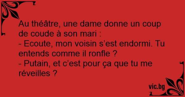 - Ecoute, mon voisin s’est endormi. Tu entends comme il ronfle ?