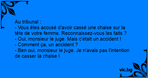 - Ben oui, monsieur le juge. Je n'avais pas l'intention de casser la chaise !
