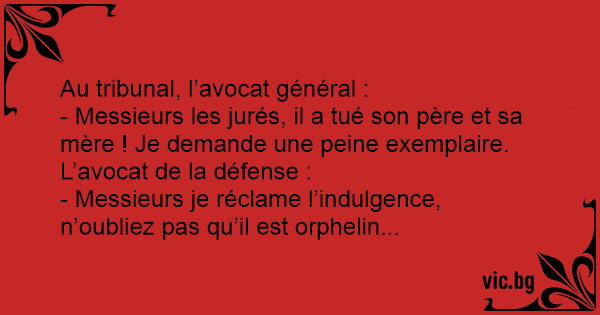- Messieurs les jurés, il a tué son père et sa mère ! Je demande une peine exemplaire.