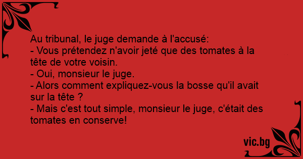 - Mais c'est tout simple, monsieur le juge, c'était des tomates en conserve!
