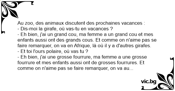 Au zoo, des animaux discutent des prochaines vacances :