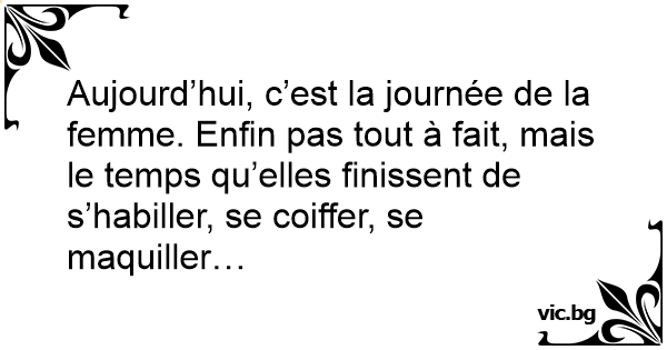Aujourd’hui, c’est la journée de la femme. Enfin pas tout à fait, mais le temps qu’elles finissent de s’habiller, se coiffer, se maquiller…