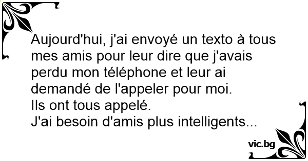 Today I texted all my friends saying I lost my phone and asked them to call it for me. They all called. I need smarter friends... Днес писах на всичките си приятели, че съм си загубил телефона и ги помолих да ми се обадят. Всички се обадиха. Имам нужда от по-умни приятели...
