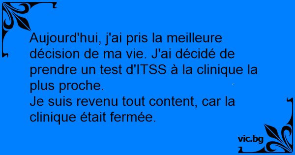 Aujourd'hui, j'ai pris la meilleure décision de ma vie. J'ai décidé de prendre un test d'ITSS à la clinique la plus proche.