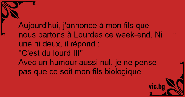 Aujourd'hui, j'annonce à mon fils que nous partons à Lourdes ce week-end. Ni une ni deux, il répond :