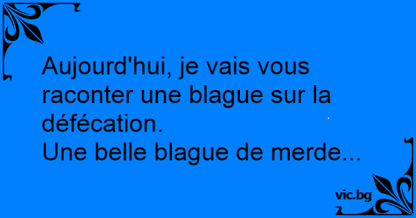 Aujourd'hui, je vais vous raconter une blague sur la défécation.
