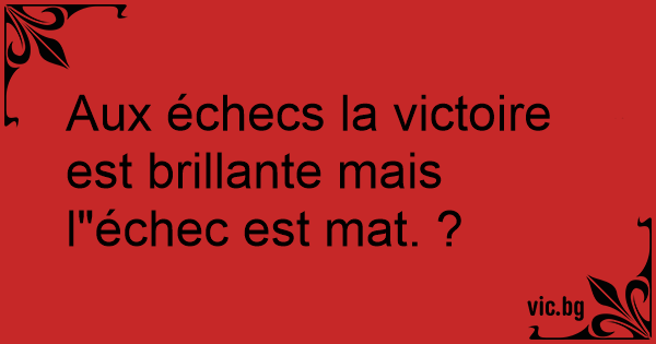 Aux échecs la victoire est brillante mais l"échec est mat. ?