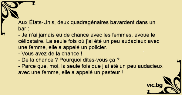 - Parce que, moi, la seule fois que j’ai été un peu audacieux avec une femme, elle a appelé un pasteur !
