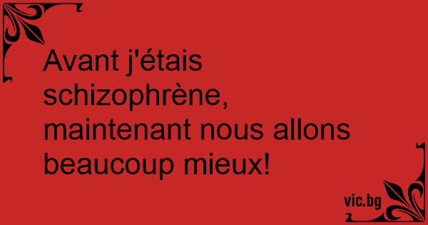 Avant j'étais schizophrène, maintenant nous allons beaucoup mieux!