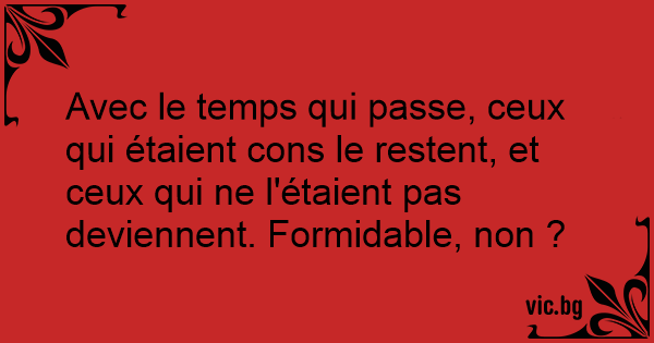 Avec le temps qui passe, ceux qui étaient cons le restent, et ceux qui ne l'étaient pas deviennent. Formidable, non ?