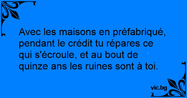 Avec les maisons en préfabriqué, pendant le crédit tu répares ce qui s'écroule, et au bout de quinze ans les ruines sont à toi.