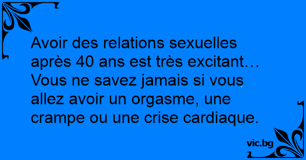 Vous ne savez jamais si vous allez avoir un orgasme, une crampe ou une crise cardiaque.