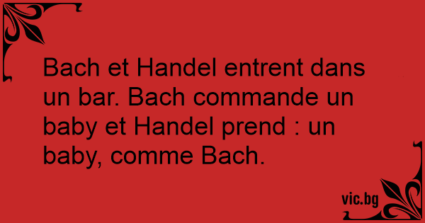 Bach et Handel entrent dans un bar. Bach commande un baby et Handel prend : un baby, comme Bach.