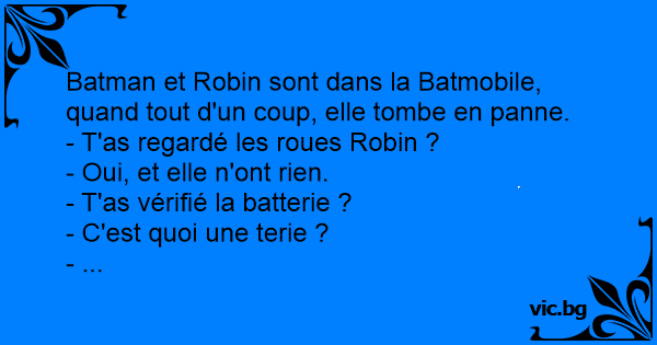 Batman et Robin sont dans la Batmobile, quand tout d'un coup, elle tombe en panne.