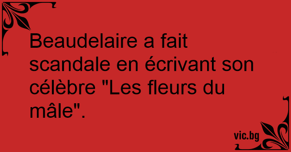 Beaudelaire a fait scandale en écrivant son célèbre "Les fleurs du mâle".