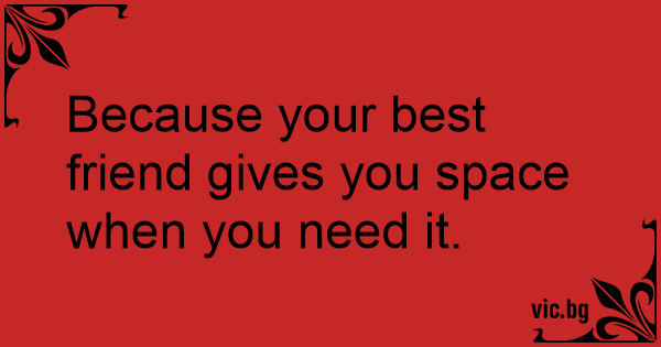 Because your best friend gives you space when you need it.