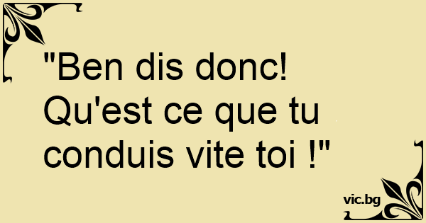 Qu'est ce que tu conduis vite toi !"