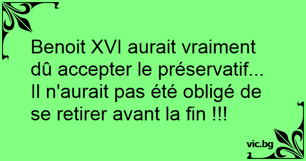 Benoit XVI aurait vraiment dû accepter le préservatif... Il n'aurait pas été obligé de se retirer avant la fin !!!