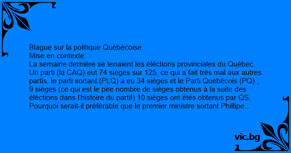 La semaine dernière se tenaient les éléctions provinciales du Québec.