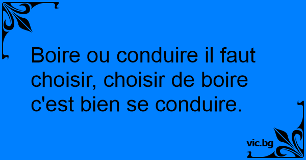 Boire ou conduire il faut choisir, choisir de boire c'est bien se conduire.
