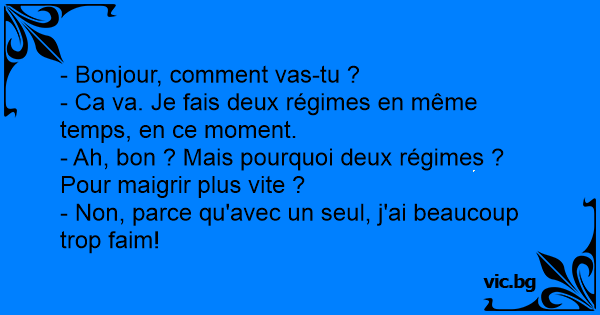 - Ca va. Je fais deux régimes en même temps, en ce moment.