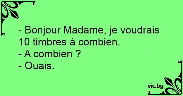 - Bonjour Madame, je voudrais 10 timbres à combien.