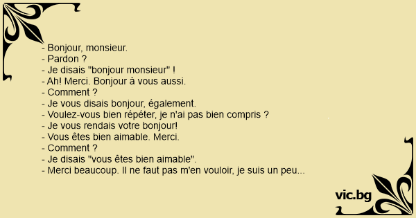 - Ah! Merci. Bonjour à vous aussi.