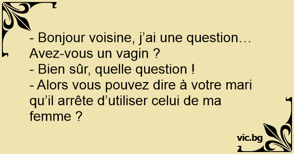 - Bonjour voisine, j’ai une question… Avez-vous un vagin ?