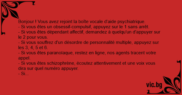 - Si vous êtes schizophrène, écoutez attentivement et une voix vous dira sur quel numéro appuyer.
