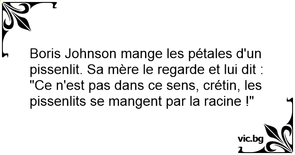 Boris Johnson mange les pétales d'un pissenlit. Sa mère le regarde et lui dit :