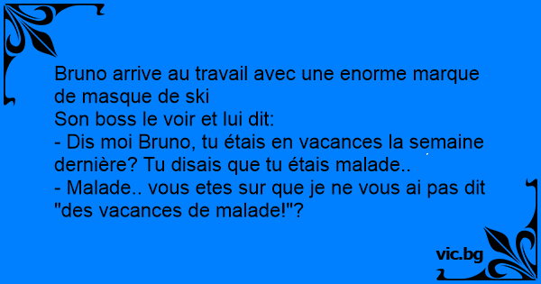 - Dis moi Bruno, tu étais en vacances la semaine dernière? Tu disais que tu étais malade..