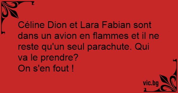 Céline Dion et Lara Fabian sont dans un avion en flammes et il ne reste qu'un seul parachute. Qui va le prendre?